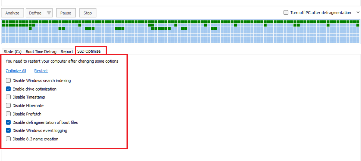 - Ensure that your third-party tool proactively avoids SSD defragmentation.