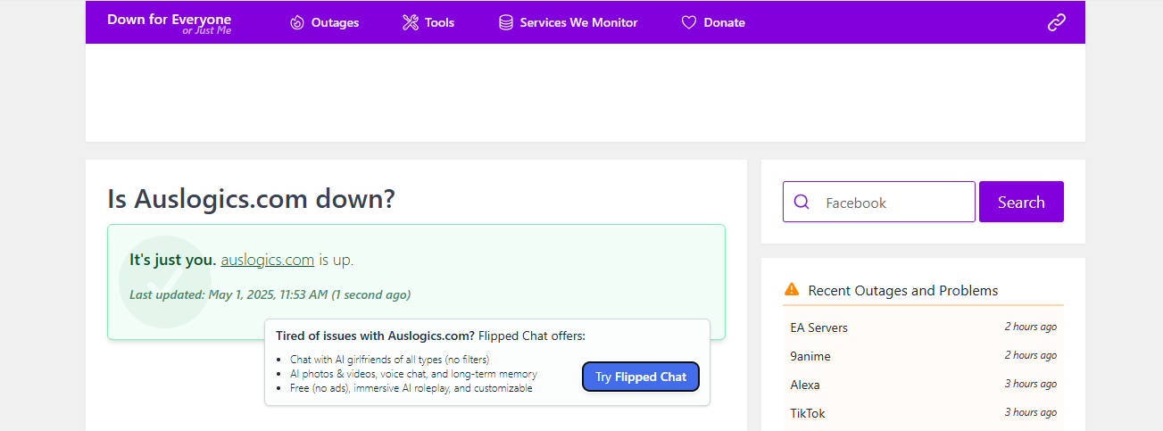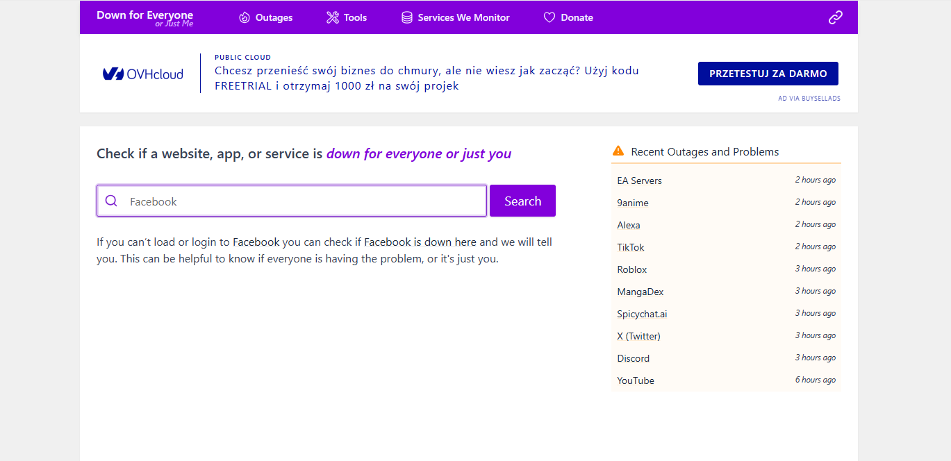 - Go to a site like Down for Everyone or Just Me or Is It Down Right Now.