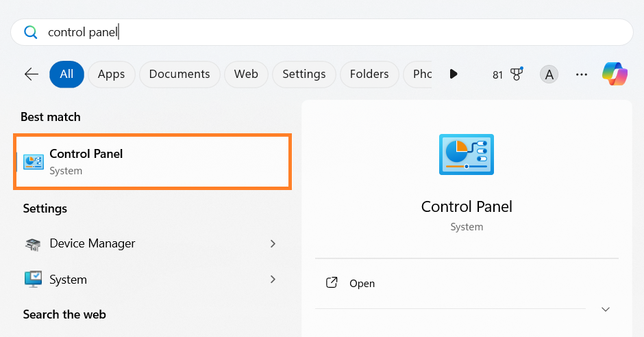 - Open Control Panel.