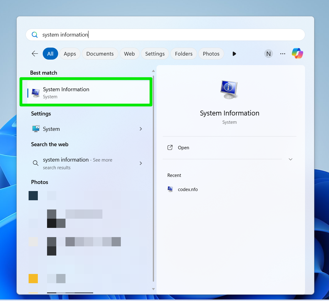 - Open the Start menu, type system information, and select the relevant search result.