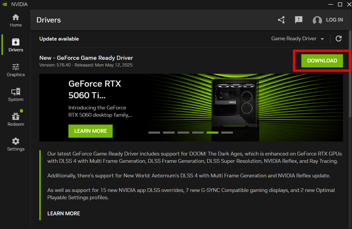 Using the automatic update option in driver management programs, such as the NVIDIA App and third-party utilities.