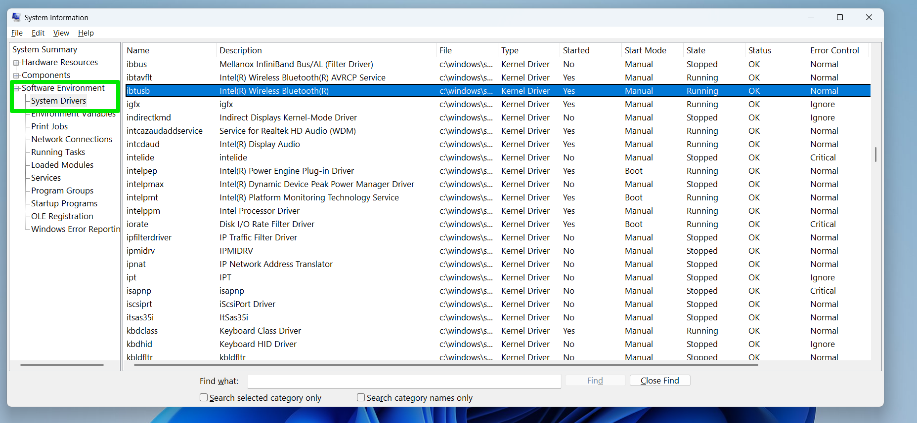 Going through the System Information window is another way to identify drivers in the System32 folder. Here’s how: