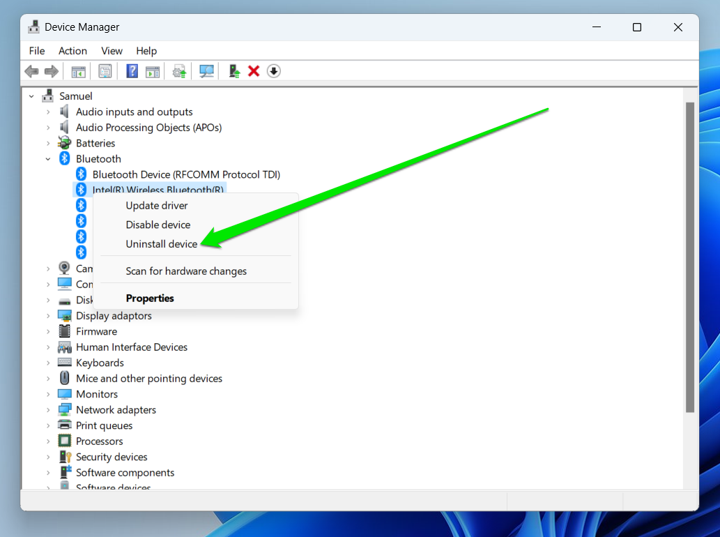 To uninstall a computer driver, right-click the device, select Uninstall device, and click Uninstall in the confirmation prompt.
