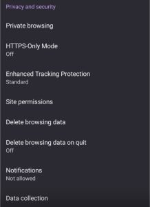 Selecione “Privacidade e segurança” e toque em “Limpar dados…”