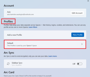 Role até “Perfis” e clique no seu perfil. O meu está como “Default”, mas pode ser diferente dependendo de como você personalizou o navegador.