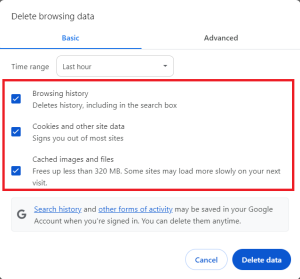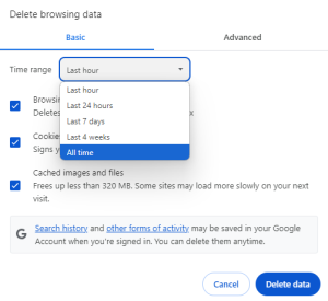 - Aqui, você pode marcar as opções dos dados que deseja excluir e escolher o intervalo de tempo desejado. Quando terminar, clique em “Excluir dados”.