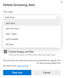 Se você deseja remover o cache do navegador no aplicativo Edge: