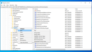 Se ele não existir, você pode criá-lo rapidamente: clique com o botão direito na pasta System e selecione Novo > Valor DWORD (32 bits).