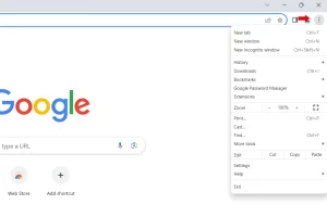 - Quando a janela do navegador estiver aberta, clique no menu no canto superior direito.