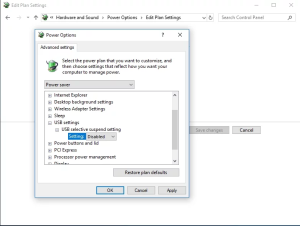 - Desative Suspensão seletiva USB (bateria e tomada)