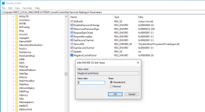 6. Se a entrada MaxNegativeCacheTtl não estiver presente, será necessário criá-la. Após criar a entrada, dê um duplo clique nela.