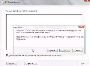 - Durante a instalação do Windows 10, quando solicitado a selecionar um disco, clique na opção Carregar driver (Load Driver)