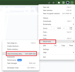 No menu suspenso, clique em Mais ferramentas e depois em Limpar dados de navegação.