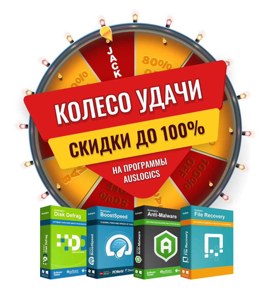 Вы попали на счастливый день в Auslogics. Крутите Колесо Удачи и выигрывайте крутые призы и скидки